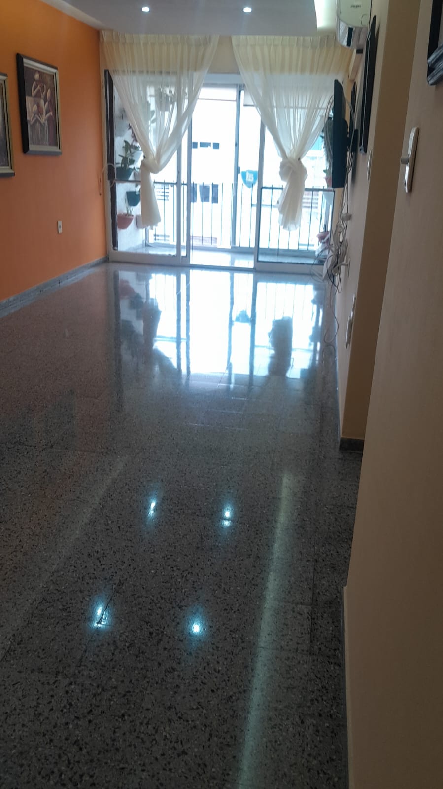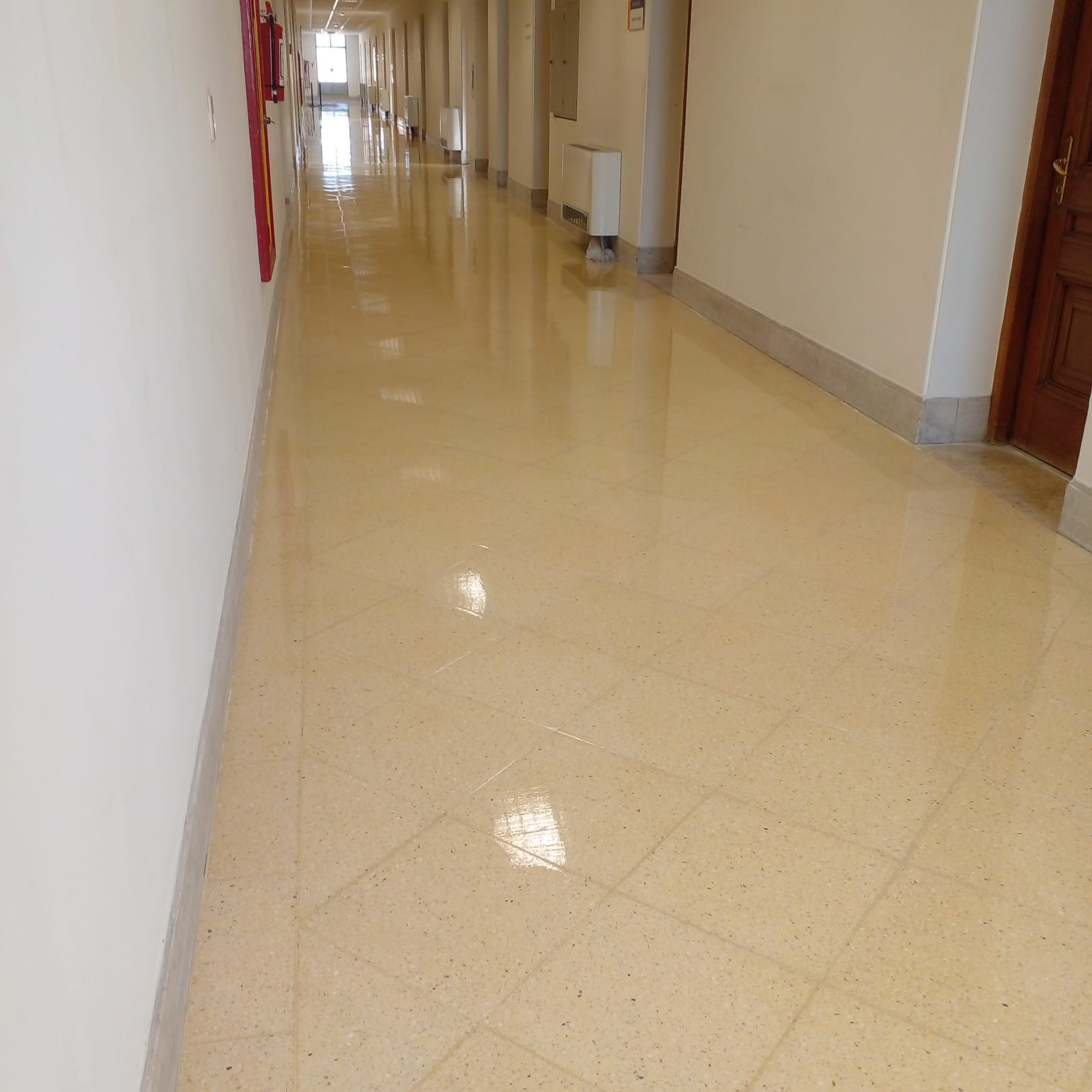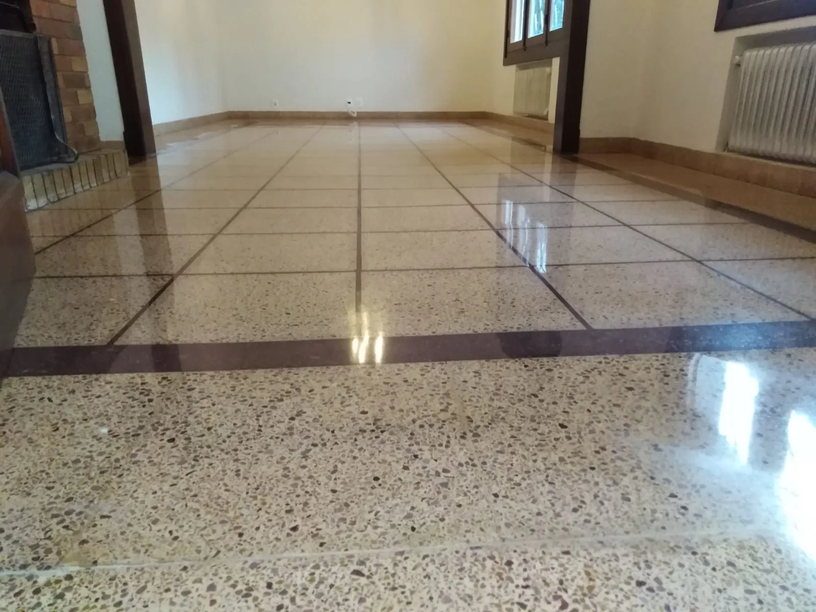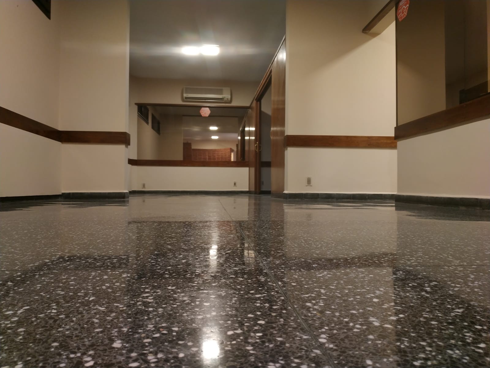 Sistema en el cual se esmerila el piso obteniendo una superficie lisa que exhibe mayor capacidad de reflejo y resistencia a la abrasión.